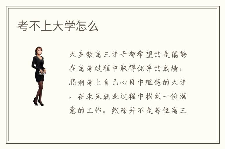 大多數(shù)高三考生都希望自己可以在今后的就業(yè)過(guò)程中更加順利,而就業(yè)順利的基礎(chǔ)就是要有一個(gè)優(yōu)秀的文憑,因此大多數(shù)考生會(huì)把希望寄托在高考上,都希望自己在高考過(guò)程中取得優(yōu)異的成績(jī),順利考上心目中的理想大學(xué)。然而并不是每個(gè)考生都可以順利考上大學(xué)的,那么這些大學(xué)考不上的同學(xué)應(yīng)該怎么辦呢?大學(xué)考不上的同學(xué)要做的是調(diào)整好自己的心態(tài),學(xué)好一門專業(yè)技術(shù)是未來(lái)就業(yè)的關(guān)鍵。
