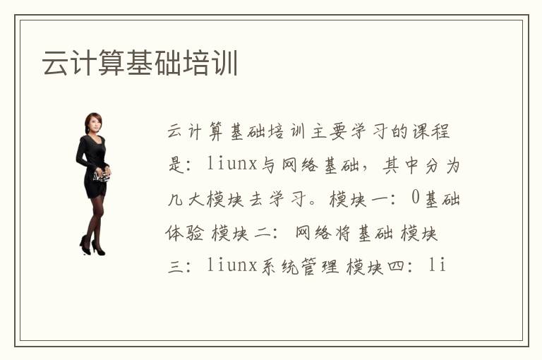 云計(jì)算基礎(chǔ)培訓(xùn)主要學(xué)習(xí)的課程是:liunx與網(wǎng)絡(luò)基礎(chǔ),其中分為幾大模塊去學(xué)習(xí)。模塊一:0基礎(chǔ)體驗(yàn) 模塊二:網(wǎng)絡(luò)將基礎(chǔ) 模塊三:liunx系統(tǒng)管理 模塊四:liunx網(wǎng)絡(luò)服務(wù)。通過這些云計(jì)算培訓(xùn)基礎(chǔ)課程學(xué)習(xí)過后,就可以運(yùn)用微電影的方式,去進(jìn)行對(duì)云計(jì)算服務(wù)器的演練,還可以掌握到liunx系統(tǒng)的基礎(chǔ)知識(shí),會(huì)進(jìn)行l(wèi)iunx系統(tǒng)的管理,能夠搭建企業(yè)常用到的liunx系統(tǒng)服務(wù)。從而具備了基本的網(wǎng)絡(luò)運(yùn)維,liunx基礎(chǔ)運(yùn)維的能力。云計(jì)算基礎(chǔ)培訓(xùn)課程就是這些,經(jīng)過這些基礎(chǔ)的培訓(xùn)課程的學(xué)習(xí)之后,就可以進(jìn)一步的,學(xué)習(xí)云計(jì)算技術(shù)在接下來的云計(jì)算課程當(dāng)中,學(xué)習(xí)起來會(huì)相對(duì)輕松一些。云計(jì)算基礎(chǔ)課程有很多模塊。但是是這些模塊,都可以學(xué)會(huì)的。