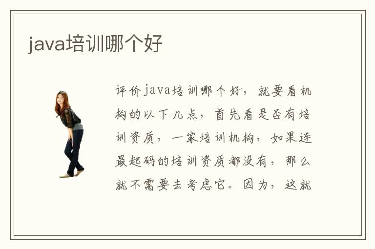 評價java培訓哪個好,就要看機構(gòu)的以下幾點,首先看是否有培訓資質(zhì),一家培訓機構(gòu),如果連最起碼的培訓資質(zhì)都沒有,那么就不需要去考慮它。因為,這就代表著你以后在學習的過程當中,沒有辦法維護自己的利益。其次就要看,這些培訓的師資力量。學習嘛,不能總靠自己,需要老師來進行輔導。這樣才可以學到專業(yè)知識。只有跟著培訓水平高的教師學習,才能夠成為專業(yè)人才。最后再看一下這些培訓是否正規(guī)?一般正規(guī)的培訓機構(gòu)都是有一些免費的試聽課程的。都是為了讓你們?nèi)ジ玫牧私?。而且都對學員非常的負責。就業(yè)方面也都是有保障的。正規(guī)的java培訓水平都非常的高。傳授給你的都是專業(yè)知識。以上幾點如果,都能夠看到。那就說明這一個培訓,就可以選擇。