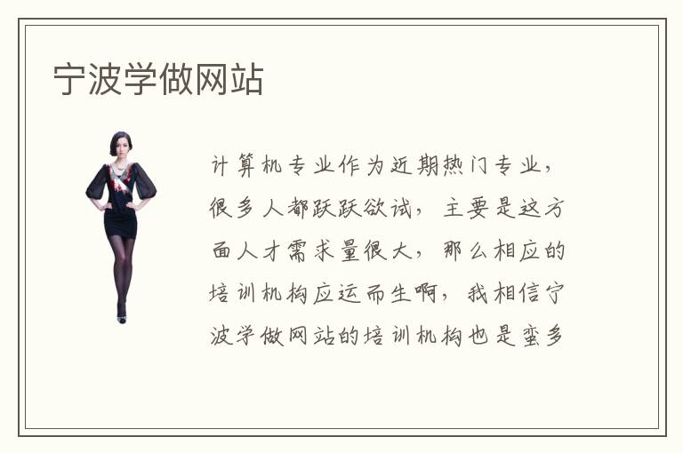 計(jì)算機(jī)專(zhuān)業(yè)作為近期熱門(mén)專(zhuān)業(yè),很多人都躍躍欲試,主要是這方面人才需求量很大,那么相應(yīng)的培訓(xùn)機(jī)構(gòu)應(yīng)運(yùn)而生啊,我相信寧波學(xué)做網(wǎng)站的培訓(xùn)機(jī)構(gòu)也是蠻多的,如果打開(kāi)手機(jī)搜一下,估計(jì)也讓你不知道如何選擇,寧波學(xué)做網(wǎng)站建設(shè)和北京做網(wǎng)站相比,我個(gè)人覺(jué)得北京的費(fèi)用貴一些啊,畢竟北京是一線城市,各方面消費(fèi)高這是必然的,培訓(xùn)機(jī)構(gòu)當(dāng)然也會(huì)考慮各方面成本,最后買(mǎi)單的也是消費(fèi)者自己啊,北京做網(wǎng)站的培訓(xùn)機(jī)構(gòu)我就知道一個(gè)叫北大青鳥(niǎo)的學(xué)校,估計(jì)是他們宣傳力度大,所以耳濡目染了,還有就是最近各方面培訓(xùn)機(jī)構(gòu)費(fèi)用都漲價(jià)了,看到這個(gè)我也是很傷心啊,本來(lái)還想去學(xué)習(xí)一門(mén)技術(shù)呢,現(xiàn)在只能是坐在觀望一下,等著啥時(shí)候降價(jià),哈哈,估計(jì)這就是想想罷了,物價(jià)上漲是必然趨勢(shì),我只能說(shuō)白日做夢(mèng)了