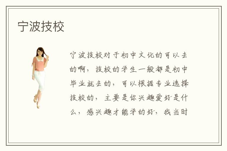 寧波技校對于初中文化的可以去的啊,技校的學(xué)生一般都是初中畢業(yè)就去的,可以根據(jù)專業(yè)選擇技校的,主要是你興趣愛好是什么,感興趣才能學(xué)的好,我當(dāng)時也是初中畢業(yè)上的技校,學(xué)的護理專業(yè),現(xiàn)在在醫(yī)院上班,當(dāng)時也不懂什么專業(yè),就聽家里人的說女孩子學(xué)護理就挺好,就業(yè)容易,現(xiàn)在也沒有啥后悔的,只是感覺有點遺憾,沒有按照自己意愿工作,你說的寧波技校應(yīng)該也是有很多學(xué)校和專業(yè)可以選擇的,完全有選擇的機會,千萬不要和我一樣,按照家里人意愿選擇專業(yè) ,初中文化也可以學(xué)習(xí)計算機專業(yè)的,現(xiàn)在不是有很多零基礎(chǔ)的培訓(xùn)機構(gòu)嘛,估計說的有點夸張,零基礎(chǔ)學(xué)習(xí)起來當(dāng)然吃力啊,對于計算機專業(yè)來說,有一定基礎(chǔ)知識是必要的,因為后期你對面的知識比較枯燥,日積月累還是很打擊自信心的,所以去學(xué)習(xí)計算機專業(yè)時候根據(jù)自身性格能力量力而行