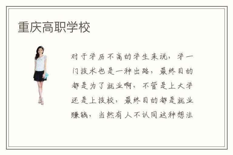 對(duì)于學(xué)歷不高的學(xué)生來(lái)說(shuō),學(xué)一門(mén)技術(shù)也是一種出路,最終目的都是為了就業(yè)啊,不管是上大學(xué)還是上技校,最終目的都是就業(yè)賺錢(qián),當(dāng)然有人不認(rèn)同這種想法,哈哈,沒(méi)關(guān)系,你開(kāi)心就好,我個(gè)人覺(jué)得如果有機(jī)會(huì)也要去學(xué)一門(mén)技術(shù),提高自身職場(chǎng)競(jìng)爭(zhēng)力啊,不然一不小心就被新人干掉了,職場(chǎng)處處都是競(jìng)爭(zhēng)者,如果你認(rèn)定了重慶高職學(xué)校,不妨花時(shí)間去看一下學(xué)內(nèi)環(huán)境和基礎(chǔ)設(shè)施這方面的啊,而且參考一個(gè)學(xué)校好壞只要是看教師教學(xué)水平怎么樣,學(xué)校有沒(méi)有給實(shí)習(xí)項(xiàng)目,綜合實(shí)力是考察一個(gè)學(xué)校好壞的重要因素,每個(gè)學(xué)校都有自己的王牌專業(yè)的,你可以問(wèn)一下結(jié)合自己興趣愛(ài)好選擇一個(gè),重慶高職學(xué)校專業(yè)介紹網(wǎng)上都有的啊,主要是看你選擇哪一個(gè)專業(yè)呢,每一個(gè)專業(yè)課程都有不同之處的,重慶高職學(xué)校適合女生的專業(yè)你也可以問(wèn)問(wèn),現(xiàn)在很多專業(yè)都不分男女了啊,大部分專業(yè)都是適合女生的