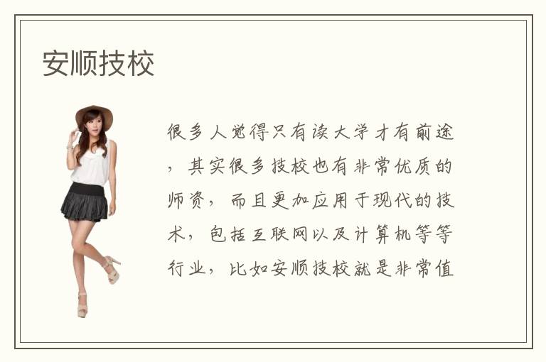 很多人覺得只有讀大學(xué)才有前途,其實很多技校也有非常優(yōu)質(zhì)的師資,而且更加應(yīng)用于現(xiàn)代的技術(shù),包括互聯(lián)網(wǎng)以及計算機(jī)等等行業(yè),比如安順技校就是非常值得選擇的學(xué)校。安順技校簡介是有多年經(jīng)驗的技術(shù)學(xué)校,有多個優(yōu)越的專業(yè),包括計算機(jī)數(shù)控技術(shù)以及多媒體應(yīng)用管理技術(shù),計算機(jī)平面設(shè)計,軟件信息服務(wù)等等,都是現(xiàn)在非常熱門而且競爭激烈的行業(yè)。安順技校好不好其實是很多人都會想到話題,對于一些不知道如何選擇學(xué)校的學(xué)生來說,確實是很大的困擾。那大家可以了解一下安順技校的師資,正所謂沒有教不好的學(xué)生,只有教不好的老師,這所學(xué)校的老師都具有高的學(xué)歷,包括博士,博士后,碩士等等,而且有多個省級的教育資源團(tuán)隊,可以了解當(dāng)?shù)氐臅r代發(fā)展,為每一個學(xué)生做出正確的引導(dǎo)。