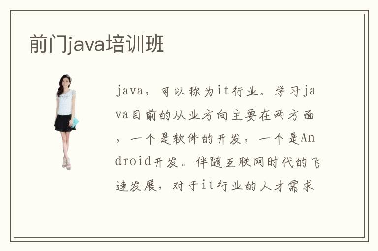 java,可以稱為it行業(yè)。學(xué)習(xí)java目前的從業(yè)方向主要在兩方面,一個是軟件的開發(fā),一個是Android開發(fā)。伴隨互聯(lián)網(wǎng)時代的飛速發(fā)展,對于it行業(yè)的人才需求量越來越大,it行業(yè)就業(yè)前景十分廣闊。當(dāng)然,好的就業(yè)前景也就意味著可觀的收入。當(dāng)前java從業(yè)者的薪資普遍非常高??梢哉f學(xué)習(xí)java非常具有發(fā)展空間。前門java培訓(xùn)班。北京前門作為北京繁華地段,自然有很多優(yōu)秀的教育機(jī)構(gòu)。前門地區(qū)附近地區(qū)有多家從事it教育的機(jī)構(gòu)。前門java培訓(xùn)班哪家好?在選擇時同學(xué)們可以用多種方法。同學(xué)們可以自己在網(wǎng)上搜索,選擇口碑比較好的?;蛘叨喽嘞裼H友們咨詢。但最好是自己親自實地解一下,看看教師的教學(xué)質(zhì)量,自己學(xué)校的環(huán)境等等相關(guān)問題。java培訓(xùn)班包分配嗎?每家教育機(jī)構(gòu)的機(jī)制不同,所以這個還是要看培訓(xùn)班招收學(xué)員的政策。同學(xué)們在選擇時應(yīng)該具體看教育機(jī)構(gòu)的教學(xué)質(zhì)量及內(nèi)容,畢竟學(xué)好一門技術(shù)才是最重要