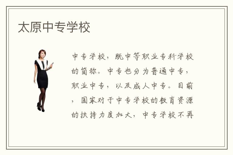 中專學(xué)校,既中等職業(yè)專科學(xué)校的簡稱。中專也分為普通中專,職業(yè)中專,以及成人中專。目前,國家對于中專學(xué)校的教育資源的扶持力度加大,中專學(xué)校不再是“差等生”的選擇了。中專學(xué)校每年在為國家輸送大量專業(yè)技術(shù)人才。太原中專學(xué)校。太原市內(nèi),大約有六百多家中專學(xué)校,包括私立與公立的。其中,比較知名的有:1.太原市衛(wèi)生學(xué)校,太原旅游職業(yè)學(xué)院,山西旅游職業(yè)學(xué)院,太原市文化藝術(shù)學(xué)校,太原市財貿(mào)學(xué)校,太原市體育運動學(xué)校,太原廣播電視中專學(xué)校,太原市財政金融職業(yè)中專學(xué)校,太原商貿(mào)經(jīng)濟職業(yè)中專,太原市鐵路機械學(xué)校,太原幼兒師范學(xué)校等。太原中專學(xué)校哪家好?這個問題很難具體回答,因為每所學(xué)校都有自己的特色科系。比如想在藝術(shù)方面發(fā)展,那么藝術(shù)學(xué)校就是你的優(yōu)先選擇。比如你對數(shù)學(xué)敏感,那么財貿(mào)學(xué)校則十分歡迎你!所以,這個在選擇時還要同學(xué)們結(jié)合自身情況,多多了解一番,就會得出自己想要的答案。