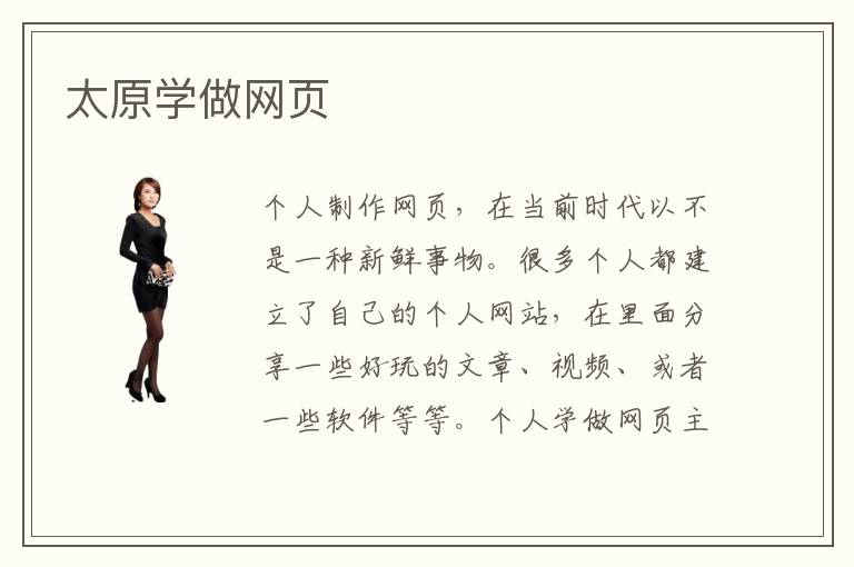 個(gè)人制作網(wǎng)頁(yè),在當(dāng)前時(shí)代以不是一種新鮮事物。很多個(gè)人都建立了自己的個(gè)人網(wǎng)站,在里面分享一些好玩的文章、視頻、或者一些軟件等等。個(gè)人學(xué)做網(wǎng)頁(yè)主要有兩種渠道:一是自學(xué);二是報(bào)名培訓(xùn)機(jī)構(gòu),跟著老師學(xué)習(xí)。先說(shuō)自學(xué),優(yōu)點(diǎn)是成本低。缺點(diǎn)則是學(xué)習(xí)周期長(zhǎng),并且容易“走彎路”。而報(bào)名培訓(xùn)班的優(yōu)點(diǎn)是學(xué)習(xí)時(shí)間短,減少錯(cuò)誤率。但是經(jīng)濟(jì)方面會(huì)有一些投入。但是筆者建議如果同學(xué)們的基礎(chǔ)不是太好,或者以后想專業(yè)從事網(wǎng)站制作,那么最好還是報(bào)名一家培訓(xùn)機(jī)構(gòu)。因?yàn)榻虒W(xué)質(zhì)量可以得到保障。太原學(xué)做網(wǎng)頁(yè)和太原學(xué)做網(wǎng)頁(yè)培訓(xùn)班有哪些?。網(wǎng)頁(yè)制作培訓(xùn)班,其實(shí)就是it培訓(xùn)班。因?yàn)榫W(wǎng)頁(yè)制作只是it培訓(xùn)的其中一部分。太原市內(nèi)目前比較知名的It培訓(xùn)班有:太原兄弟連教育,北大青鳥太原分校,太原云知夢(mèng)等等。這些培訓(xùn)班的無(wú)論口碑還是教學(xué)質(zhì)量都是不錯(cuò)的。太原學(xué)做網(wǎng)頁(yè)學(xué)費(fèi)。一般來(lái)說(shuō),正規(guī)的培訓(xùn)機(jī)構(gòu)在學(xué)費(fèi)收取方面都是公開(kāi)透明的,所以同學(xué)們不用過(guò)于擔(dān)心這方面的問(wèn)題。