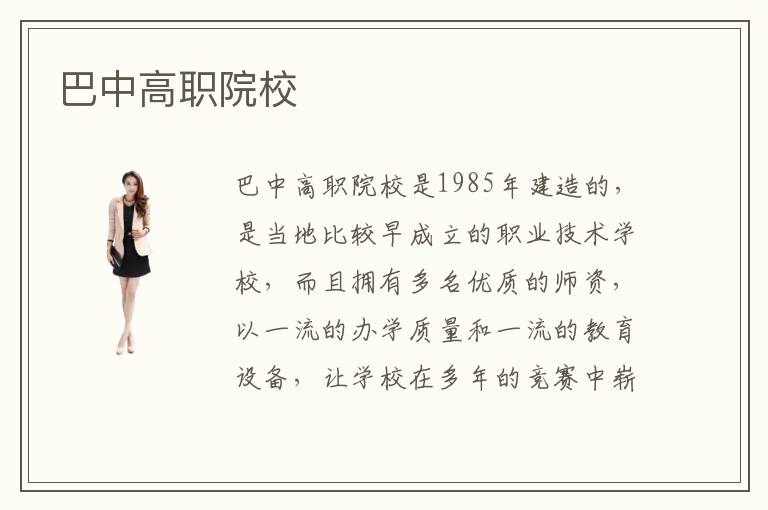 巴中高職院校是1985年建造的,是當(dāng)?shù)乇容^早成立的職業(yè)技術(shù)學(xué)校,而且擁有多名優(yōu)質(zhì)的師資,以一流的辦學(xué)質(zhì)量和一流的教育設(shè)備,讓學(xué)校在多年的競(jìng)賽中嶄露頭角,也受到很多家長和學(xué)生的好評(píng)。巴中高職院校簡介主要在于學(xué)校的特色也是非常突出的,通過大批的應(yīng)用來改善學(xué)生的動(dòng)手能力,目前已經(jīng)培養(yǎng)了2萬學(xué)生,為社會(huì)輸送一批又一批人才。巴中高職院校優(yōu)點(diǎn)是非常重視思想品德的教育,而不再只關(guān)注于學(xué)生的時(shí)間和專業(yè)技能,學(xué)校秉承著育人先育德的教育理念,十分重視學(xué)生的思想培養(yǎng),旨在為學(xué)生培養(yǎng)尊師重道,積極向上,樂于學(xué)習(xí),謙虛謹(jǐn)慎的復(fù)合型人才。而在專業(yè)方面也會(huì)通過實(shí)踐相互結(jié)合,每個(gè)學(xué)生都有嚴(yán)格的訓(xùn)練和要求,充分的實(shí)踐時(shí)間,讓學(xué)生有更多機(jī)會(huì)親自動(dòng)手實(shí)踐,培養(yǎng)良好的創(chuàng)新能力。