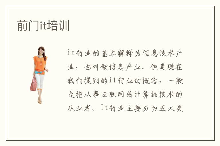 it行業(yè)的基本解釋為信息技術(shù)產(chǎn)業(yè),也叫做信息產(chǎn)業(yè)。但是現(xiàn)在我們提到的it行業(yè)的概念,一般是指從事互聯(lián)網(wǎng)或計(jì)算機(jī)技術(shù)的從業(yè)者。It行業(yè)主要分為五大類(lèi):一、網(wǎng)絡(luò)工程師。其工作內(nèi)容為負(fù)責(zé)機(jī)房的聯(lián)接以及網(wǎng)絡(luò)維護(hù)等。二是系統(tǒng)管理員。工作內(nèi)容比較籠統(tǒng),具體就是保證網(wǎng)絡(luò)通信的傳輸通暢。三、是數(shù)據(jù)庫(kù)管理員,主要職責(zé)是對(duì)數(shù)據(jù)庫(kù)進(jìn)行管理。四、是測(cè)試工程師,可以簡(jiǎn)單理解為軟件的質(zhì)檢員。五、是軟件工程師。主要從事軟件的開(kāi)發(fā)與維護(hù)等相關(guān)技術(shù)工作it行業(yè)作為一個(gè)熱門(mén)行業(yè),對(duì)入門(mén)者的學(xué)歷要求并不高,而且薪資待遇還是很不錯(cuò)的。前門(mén)it培訓(xùn),前門(mén)it培訓(xùn)學(xué)校。前門(mén)附近從事it職業(yè)教育的培訓(xùn)機(jī)構(gòu),也就是培訓(xùn)學(xué)校有大約十幾家。同學(xué)們可以自己去實(shí)地了解一下。前門(mén)it培訓(xùn)是收費(fèi)。it培訓(xùn)學(xué)校的學(xué)費(fèi)一般從幾千到一萬(wàn)元不等,有的要幾萬(wàn)元。具體金額的多少要根據(jù)你所學(xué)的課程內(nèi)容以及學(xué)校的教學(xué)環(huán)境等多方面因素決定的。