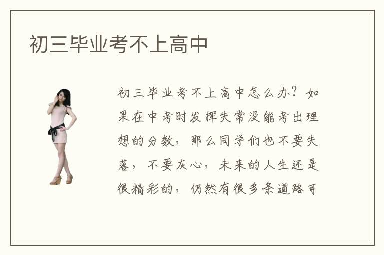 初三畢業(yè)考不上高中怎么辦?如果在中考時(shí)發(fā)揮失常沒能考出理想的分?jǐn)?shù),那么同學(xué)們也不要失落,不要灰心,未來的人生還是很精彩的,仍然有很多條道路可供同學(xué)們選擇。首先,初三畢業(yè)考不上高中,不要先急著進(jìn)入社會(huì)工作。因?yàn)檫@個(gè)年齡段社會(huì)經(jīng)驗(yàn)為零,中學(xué)文憑在求職時(shí)根本不具備競(jìng)爭(zhēng)力,找不到什么好工作的。最好是選擇學(xué)習(xí)一門謀生技能??疾簧细咧羞€能上學(xué)嗎?答案是肯定的。可以考慮以下幾種方法:一、如果只是一次沒有發(fā)揮好,那么不妨再?gòu)?fù)讀一次初三。二、應(yīng)屆初中畢業(yè)生正好可以讀職業(yè)高中。正符合職業(yè)高中的招生要求。三、可以讀中專。中專的主要方向在于相關(guān)專業(yè)技能的培訓(xùn),所以對(duì)學(xué)生的成績(jī)要求不高,入學(xué)門檻較低。四。、職業(yè)技術(shù)學(xué)校。到職業(yè)技術(shù)學(xué)校學(xué)習(xí)一門技能,立足社會(huì)。這是目前大家選擇最多的幾種方法,同學(xué)們可根據(jù)自己的情況,考慮選擇。