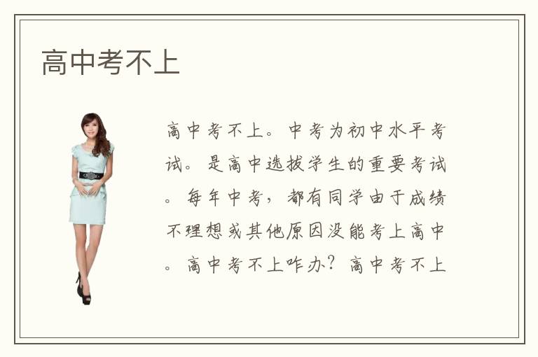 高中考不上。中考為初中水平考試。是高中選拔學(xué)生的重要考試。每年中考,都有同學(xué)由于成績不理想或其他原因沒能考上高中。高中考不上咋辦?高中考不上能上學(xué)嗎?其實(shí)高中考不上還是有很多出路可供同學(xué)們選擇的。這里筆者只簡單說幾種。一:復(fù)讀初三,然后再考高中,最后上大學(xué)。這個(gè)方法比較適合偶爾狀態(tài)失常,考試沒發(fā)揮出平常成績而導(dǎo)致落榜的同學(xué)。如果本身成績就不是很好,那么這個(gè)方法并不推薦。二:讀職高,職高即為職業(yè)高中。一般招生條件為應(yīng)屆初中畢業(yè)生。職高在級(jí)別上與普通高中無異,都屬普通高級(jí)中學(xué)。在校期間課程上,職高為專業(yè)與文化課并重,除專業(yè)課程外,文化課也是平常學(xué)習(xí)的一方面內(nèi)容,而普通高中則更注重學(xué)生文化水平的教育。職高畢業(yè)的同學(xué)可以參加對口高考,一樣能上大學(xué)。三:上技校。技校就是我們說的技工學(xué)校。技校的辦學(xué)宗旨在于專業(yè)技能的教學(xué),讓學(xué)生掌握一門謀生技能,對于文化方面,要求比較低。所以入學(xué)條件非常寬松。但是高級(jí)技校畢業(yè)的同學(xué)是有資格參加高考的,一樣有機(jī)會(huì)上大學(xué)的。所以,具體怎樣選擇同學(xué)們可以根據(jù)自身情況考量。