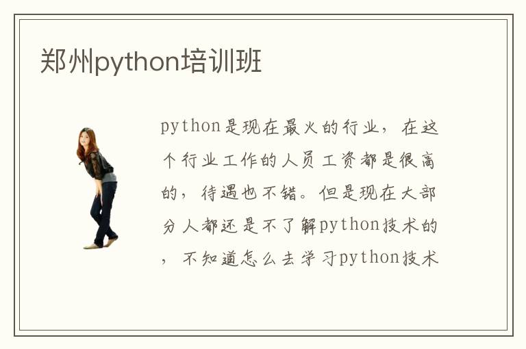 python是現(xiàn)在最火的行業(yè),在這個行業(yè)工作的人員工資都是很高的,待遇也不錯。但是現(xiàn)在大部分人都還是不了解python技術(shù)的,不知道怎么去學習python技術(shù)。索性就自己買本書看看,可是書買了好幾天自己就是看不懂啊,怎么辦呢?這個時候就得去報些專業(yè)的培訓班進行培訓學習,而鄭州python培訓班就挺不錯的,這些培訓班都是很有教學經(jīng)驗的。python技術(shù)是非常受歡迎的一門技術(shù)。把python這門技術(shù)學好將來還是比較有前途的,比起其他的專業(yè)python專業(yè)具有技術(shù)性比較容易的到大家的認可。每年有好多上班族不甘于現(xiàn)狀都去鄭州python培訓python培訓班學習python技術(shù)。而那些學習過這個技術(shù)的人都在自己的工作崗位上取得了不錯的成就。所以學一門專業(yè)的話還是學校python專業(yè)吧。在互聯(lián)網(wǎng)迅猛發(fā)展的今天,python行業(yè)以其迅猛的勢頭,不斷上升至社會目前最具前景的高薪行python是什么業(yè)。python相關(guān)領(lǐng)域也屬于python行業(yè)的一塊,因此python工程師這個職業(yè)可以用火爆來形容,前景被人看好,高薪酬自然不在話下。顯然在這么大的機遇下,鄭州python培訓班也在如火如荼的開展,那么參加鄭州python培訓班學費多少呢?據(jù)調(diào)查學費在15000-20000之間,學習周期3-6個月。另外來說說python相關(guān)崗位有哪些,據(jù)了解python相關(guān)崗位有:python開發(fā)工程師、python研發(fā)工程師、H5/前端開發(fā)工程師、python后端工程師、大數(shù)據(jù)分析師、python運維工程師等等。那么很多人會問了鄭州python工程師的薪資待遇如何?在鄭州,python工程師的薪資待遇還是很好的,5-6k為基礎(chǔ),成熟的python工程師最高薪資在30-50k不等。當然掌握理論和技能操作外,成熟的python工程師還具備豐富的項目經(jīng)驗。python通俗點說就是一種動態(tài)腳本語言,鑲嵌于HTML里。屬于網(wǎng)頁開發(fā)的一種語言。當然,現(xiàn)在市面上也有許多培訓python的培訓機構(gòu),鄭州python培訓班有哪些機構(gòu)呢?黑馬程序員,甲骨文,兄弟連等這些培訓機構(gòu)都有開設python培訓班。那么這些python培訓教學模式是什么?首先是精細化教學,一般的模式是上午課堂授課,下午自我練習,有經(jīng)驗的講師輔佐在側(cè)。通常一個培訓班的人員在5-7個左右,屬于小班制小學,可以讓講師了解每個人的情況和學習進度。另外,這些鄭州python培訓班都有與企業(yè)開展實際項目,在培人員可以參與其中,享受其中的就業(yè)資源,項目資源和經(jīng)驗教訓。可以說是受益良多了。很好的在培訓和就業(yè)上做對接,還在為是否自學還是參加培訓的同學可以做決定鄭州python培訓班教學模式啦。