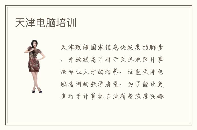 天津跟隨國家信息化發(fā)展的腳步,開始提高了對于天津地區(qū)計(jì)算機(jī)專業(yè)人才的培養(yǎng),注重天津電腦培訓(xùn)的教學(xué)質(zhì)量,為了能讓更多對于計(jì)算機(jī)專業(yè)有著濃厚興趣的學(xué)生,或者是未來想要在計(jì)算機(jī)行業(yè)從事相關(guān)職業(yè)的人,更好的學(xué)習(xí)到計(jì)算機(jī)專業(yè)課程。天津地區(qū)先后開始成立了很多專業(yè)的計(jì)算機(jī)培訓(xùn)學(xué)校,包括國內(nèi)知名的計(jì)算機(jī)培訓(xùn)學(xué)校也在,天津地區(qū)開設(shè)了分機(jī)構(gòu)。
