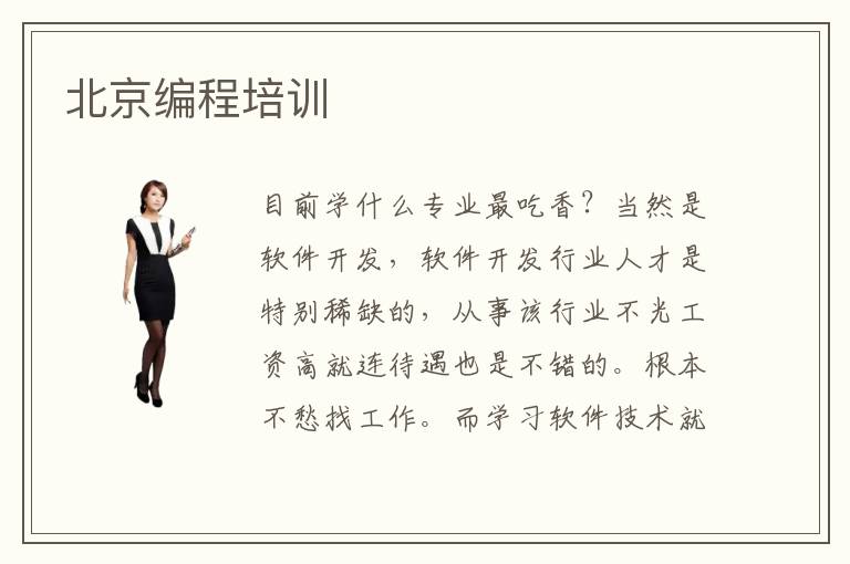 目前學(xué)什么專業(yè)最吃香?當(dāng)然是軟件開發(fā),軟件開發(fā)行業(yè)人才是特別稀缺的,從事該行業(yè)不光工資高就連待遇也是不錯(cuò)的。根本不愁找工作。而學(xué)習(xí)軟件技術(shù)就得去專業(yè)的地方進(jìn)行培訓(xùn)學(xué)習(xí),這樣才能更快的掌握軟件技術(shù)。北京軟件培訓(xùn)機(jī)構(gòu)就是專門培訓(xùn)這方面人才的機(jī)構(gòu)。這些機(jī)構(gòu)都有著專業(yè)的教學(xué)方式,在培養(yǎng)軟件技術(shù)方面是非常有經(jīng)驗(yàn)的。想把軟件開發(fā)技術(shù)學(xué)好就得來北京進(jìn)行軟件訓(xùn)。會(huì)讓你學(xué)習(xí)起來很輕松,北京軟件培訓(xùn)軟件培訓(xùn)機(jī)構(gòu)相比其他地方的培訓(xùn)機(jī)構(gòu)要好得多。想要升職加薪就得努力的去學(xué)習(xí)去提升自己,只有自己足夠優(yōu)秀了才可以得到自己想要的。北京軟件培訓(xùn)機(jī)構(gòu)有很多,但是他們都是非常專業(yè)的。只要是在北京編程培訓(xùn)學(xué)習(xí)過的學(xué)員都說北京軟件培訓(xùn),不然是非常不錯(cuò)的。好的學(xué)校就是讓學(xué)生家長(zhǎng)放心的,北京編程培訓(xùn)在這方面就做得很不北京編程培訓(xùn)怎么樣錯(cuò)。北京的這些培訓(xùn)學(xué)校雖然挺多的,但是都是很專業(yè)的在培養(yǎng)人才方面。北京編程培訓(xùn)環(huán)境優(yōu)美,周圍特別的安靜,是一個(gè)靜下心來學(xué)習(xí)的好地方。北京編程培訓(xùn)師資力量非常雄厚,老師們都是軟件方面的人才,在課上,老師們會(huì)很有耐心的授課,課下會(huì)關(guān)心學(xué)生們的生活狀況。就是,在就業(yè)方面學(xué)校也會(huì)安排對(duì)應(yīng)的老師跟隨指導(dǎo)就業(yè),為學(xué)生選擇好的工作崗位。因此北京編程培訓(xùn)深受家長(zhǎng)學(xué)生們的喜愛。在這里畢業(yè)的學(xué)生們都說北京的軟件培訓(xùn)學(xué)校好。所以選擇學(xué)校真的不要著急,來北京看一看考慮一下北京的學(xué)校。北京編程培訓(xùn)不會(huì)讓你失望的。畢竟有那么多成功的例子,還是非常值得信賴的。北京編程培訓(xùn)歷史悠久,培養(yǎng)的學(xué)生非常多,北京編程培訓(xùn)都是非常好的,比起其他地方的學(xué)校北京編程培訓(xùn)要好很多。教學(xué)設(shè)備方面都是最先進(jìn)的,好的設(shè)備會(huì)給學(xué)生帶來不一樣的體驗(yàn)。學(xué)習(xí)起專業(yè)技術(shù)會(huì)更加的輕松,會(huì)更快的把軟件技術(shù)學(xué)好。北京編程培訓(xùn)老師們都非常的親切,對(duì)待學(xué)生很有耐心。都是非常有教學(xué)經(jīng)驗(yàn)的老師,教出來的學(xué)生絕對(duì)是專業(yè)的。讓很多學(xué)生家長(zhǎng)都信賴。每年有許許多多來自全國(guó)各地的學(xué)生都到北京編程培訓(xùn)學(xué)習(xí)軟件技術(shù)。軟件技術(shù)是非常吃香的技術(shù),也是深受人們歡迎的技術(shù)。學(xué)好軟件開發(fā)技術(shù)會(huì)讓你的人生如開了掛一般。北京軟學(xué)校都是非常專業(yè)的學(xué)校,在北京的這些學(xué)校畢業(yè)的學(xué)生都有著一份不錯(cuò)的工作,也深受老板的器重。他們至今都感謝北京軟件培訓(xùn)學(xué)校。