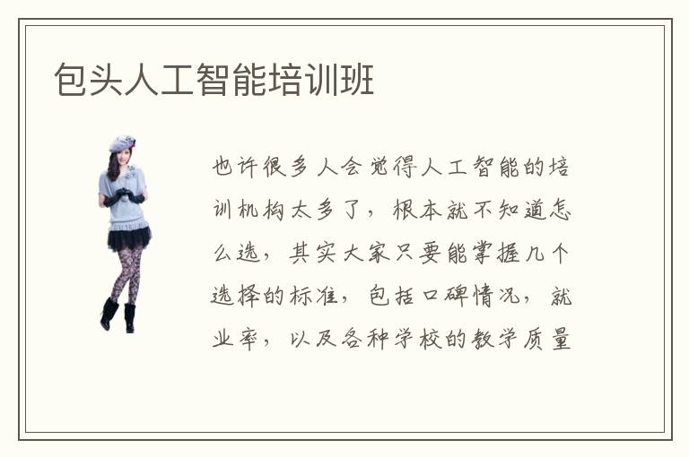 也許很多人會覺得人工智能的培訓機構太多了,根本就不知道怎么選,其實大家只要能掌握幾個選擇的標準,包括口碑情況,就業(yè)率,以及各種學校的教學質量等等,往往是能了解整體的學校大概的就業(yè)方向和發(fā)展優(yōu)勢。包頭人工智能培訓人工智能培訓班哪些有效果,其實還有很多人工智能的培訓機構,發(fā)揮良好的優(yōu)勢,改善人們的知識水準,而且也能夠應用到真正的生活場景,不僅對個人保障未來的發(fā)展,也能為社會做出更大的貢獻,便利正常生活。包頭人工智能培訓班培訓的效果,要是覺得人工智能專業(yè)優(yōu)勢不太明顯,害怕被他人淘汰或者是趕超,那么可以到培訓班學習一下,有些比較有經(jīng)驗的老師會擁有先進的知識和應用的水平,讓學生更快針對性進行解決各種困難的知識點,效果往往也更加明顯。