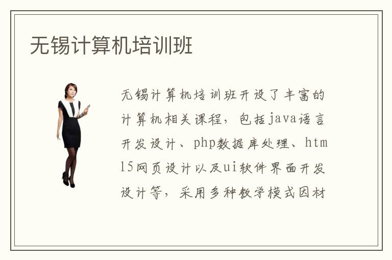 無錫計(jì)算機(jī)培訓(xùn)班開設(shè)了豐富的計(jì)算機(jī)相關(guān)課程,包括java語言開發(fā)設(shè)計(jì)、php數(shù)據(jù)庫處理、html5網(wǎng)頁設(shè)計(jì)以及ui軟件界面開發(fā)設(shè)計(jì)等,采用多種教學(xué)模式因材施教,注重學(xué)生計(jì)算機(jī)基礎(chǔ)能力的掌握。由于無錫計(jì)算機(jī)培訓(xùn)計(jì)算機(jī)培訓(xùn)班與無錫地區(qū)的多家知名計(jì)算機(jī)公司有項(xiàng)目合作,在學(xué)員牢牢扎實(shí)計(jì)算機(jī)基礎(chǔ)的條件上,積極鼓勵(lì)學(xué)生參與實(shí)踐項(xiàng)目,不斷提升學(xué)員的動(dòng)手能力。