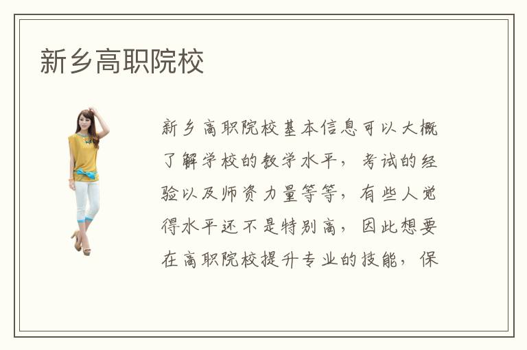 新鄉(xiāng)高職院校基本信息可以大概了解學校的教學水平,考試的經(jīng)驗以及師資力量等等,有些人覺得水平還不是特別高,因此想要在高職院校提升專業(yè)的技能,保障就業(yè)的優(yōu)勢。但不同的學校其實效果還是有非常大的區(qū)別,所以大家在選擇的時候要對比,不要只考慮一個方面。新鄉(xiāng)高職院校哪個好,一般來說,教學資源豐富,具有多年經(jīng)驗,教學模式成熟的學校,都會有非常好的效果。一方面是因為學生能夠了解這些學校的目的,學校也能更加規(guī)范管理學生,始終保持積極向上的學習態(tài)度,效果往往是非常驚人的。新鄉(xiāng)高職院校入學須知,首先要了解學校的水平,入學的門檻以及專業(yè)的優(yōu)勢,學費等等?,F(xiàn)在學校里有很多,要找一個學校其實是非常簡單的,但要找一個好的學校卻是難上加難。
