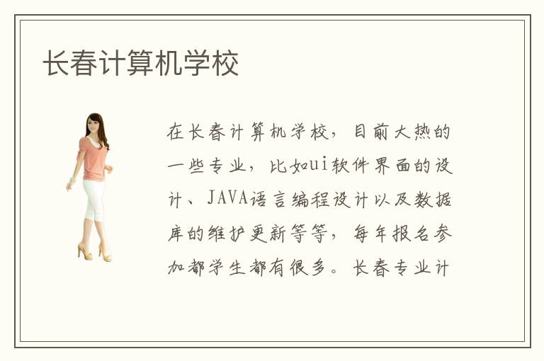 在長春計(jì)算機(jī)學(xué)校,目前大熱的一些專業(yè),比如ui軟件界面的設(shè)計(jì)、JAVA語言編程設(shè)計(jì)以及數(shù)據(jù)庫的維護(hù)更新等等,每年報(bào)名參加都學(xué)生都有很多。長春專業(yè)計(jì)算機(jī)學(xué)校開設(shè)這么多課程的目的就是讓學(xué)生盡可能挑選到自己感興趣的專業(yè),以此更高效率的掌握一門新興的it技術(shù)。計(jì)算機(jī)的學(xué)習(xí)過程是漫長而又枯燥,很多學(xué)生因?yàn)闆]有找到適合自己的學(xué)習(xí)方式而放棄it專業(yè)都學(xué)習(xí)。那么,長春計(jì)算機(jī)學(xué)校怎么樣呢?