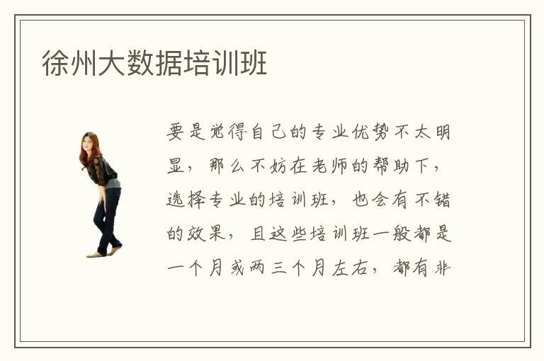 要是覺得自己的專業(yè)優(yōu)勢(shì)不太明顯,那么不妨在老師的幫助下,選擇專業(yè)的培訓(xùn)班,也會(huì)有不錯(cuò)的效果,且這些培訓(xùn)班一般都是一個(gè)月或兩三個(gè)月左右,都有非常不錯(cuò)的效果,大大節(jié)省人們的時(shí)間和精力,在未來的發(fā)展道路上,也能越來越重視學(xué)習(xí)的效率。徐州大數(shù)據(jù)培訓(xùn)班容易嗎,很多培訓(xùn)班都能深入淺出,讓學(xué)生的壓力變得更小,學(xué)習(xí)成績(jī)變得更好。徐州大數(shù)據(jù)培訓(xùn)大數(shù)據(jù)培訓(xùn)班還擁有優(yōu)良的設(shè)備,專家的資源也比較豐富。有些老師已經(jīng)有20多年的教學(xué)經(jīng)驗(yàn),遇到過可能出現(xiàn)的所有問題,所以大家也可以放心。徐州大數(shù)據(jù)培訓(xùn)班優(yōu)點(diǎn),主要是小班教學(xué),很多學(xué)校都有優(yōu)良的設(shè)備,而且有些學(xué)校在每一堂理論課結(jié)束以后,都會(huì)背石訓(xùn)練的課程,讓學(xué)生自己改善,提高就業(yè)的能力和動(dòng)手能力。