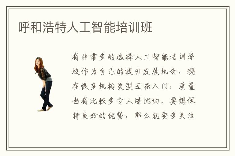 有非常多的選擇人工智能培訓學校作為自己的提升發(fā)展機會,現(xiàn)在很多機構類型五花八門,質量也有比較多令人堪憂的。要想保持良好的優(yōu)勢,那么就要多關注每種學校的專業(yè)特點,老師的水平,教學資源等等,全方位進行權衡和分析。呼和浩特人工智能培訓班水準也是比較不錯的,有些老師已經有二三十年的工作時間,總體來說,學生的應用知識水平的能力也會有所上升。呼和浩特人工智能培訓班師資反映出學校的質量,有些學校的師資力量確實是優(yōu)越,如果老師的水平很高,那么專業(yè)的優(yōu)勢會比較突出。呼和浩特人工智能培訓班學習內容會針對不同的學生來制定,有些學生專業(yè)基礎比較差,那么可以從入門知識開始,而有些學生可能專業(yè)基礎已經打得特別好,那么可以選擇高端的知識內容。