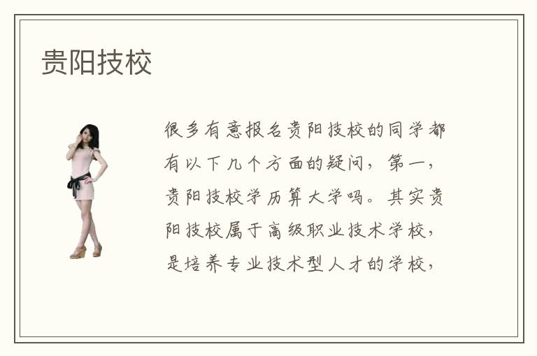 很多有意報名貴陽技校的同學都有以下幾個方面的疑問,第一,貴陽技校學歷算大學嗎。其實貴陽技校屬于高級職業(yè)技術(shù)學校,是培養(yǎng)專業(yè)技術(shù)型人才的學校,他屬于高校級別,但是不是大學學歷。第二,貴陽技校招生標準高不高,有些同學由于考試成績不理想,對于自己并不自信,因此不知道自己報名貴陽技校能不能通過。貴陽技校招生標準其實非常低,一般初中畢業(yè)生就符合招生條件。第三,貴陽技校叫教學質(zhì)量怎么樣。對于市面上琳瑯滿目的技術(shù)學校,怎樣選擇確實是重中之重。如果選擇失誤,會對未來的就業(yè)方面有一定影響。一般貴陽技校的教學水準都是比較不錯的,但是我們說,學的成果怎么樣學校只是一個橋梁,最終還是要看自己肯付出多少努力,說到底就是看學生自己。