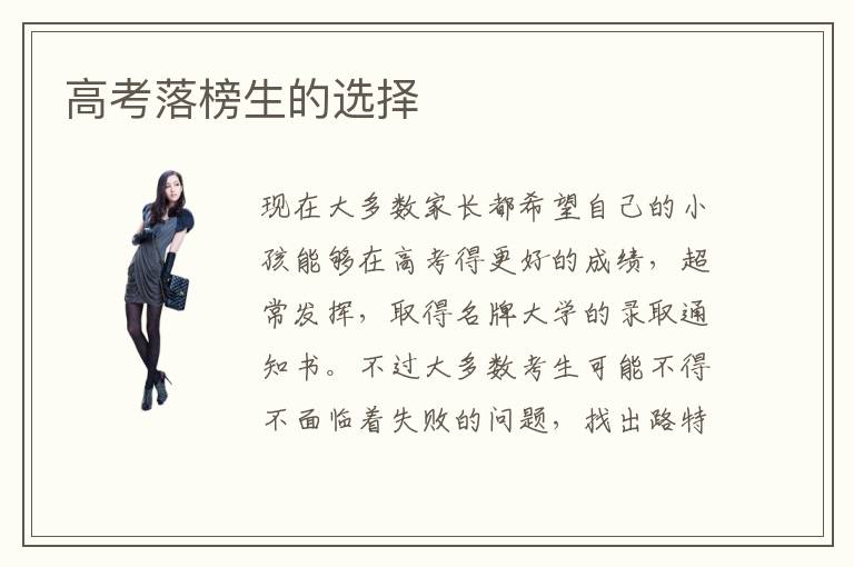現(xiàn)在大多數(shù)家長都希望自己的小孩能夠在高考得更好的成績,超常發(fā)揮,取得名牌大學的錄取通知書。不過大多數(shù)考生可能不得不面臨著失敗的問題,找出路特別困難,前途感覺到一片漆黑。高考落榜生的選擇大專學校好不好,雖然大專的學校并沒有特別明顯的專業(yè)優(yōu)勢,但更加注重實踐的課程,配合企業(yè)的培訓,讓高考的落榜生依然可以掌握科技應用。高考落榜生的選擇要不要工作,高考落榜生當然不需要馬上投入工作,而有些家境比較困苦的學生,可能不得不面對工作的窘境。但是為了能夠保障未來這些優(yōu)勢,也是需要堅持三年,找一個好一點的大專,這樣找工作才會更加輕松。不要只看到眼前的利益和視野,還是要長遠來看。畢竟剛高中畢業(yè),才二十歲左右,未來的學歷也還是非常重要的。