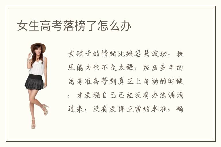 女孩子的情緒比較容易波動(dòng),抗壓能力也不是太強(qiáng),經(jīng)歷多年的高考準(zhǔn)備等到真正上考場的時(shí)候,才發(fā)現(xiàn)自己已經(jīng)沒有辦法調(diào)試過來,沒有發(fā)揮正常的水準(zhǔn),確實(shí)是非??上?。女生高考落榜了怎么辦怎么選專業(yè),一方面可以考慮專業(yè)技術(shù)的排名情況,另外一方面也要結(jié)合興趣,有些人并不感興趣,那學(xué)習(xí)過程很痛苦,也很難找到自己的優(yōu)勢和動(dòng)力所在。女生高考落榜了怎么辦要不要給自己第二次機(jī)會(huì),女孩子高考落榜了,也不要太傷心,及時(shí)把心情調(diào)整過來,如果覺得第一次沒有發(fā)揮好,那完全可以給自己第二次機(jī)會(huì),再進(jìn)行一次高考,相信第二次的充分準(zhǔn)備,可以達(dá)到更好的水準(zhǔn)。當(dāng)然也不是完全絕對,因?yàn)橛行┤说膲毫φ{(diào)節(jié)能力不算太好,因此太多壓力之下,往往很難有正常的表現(xiàn)。