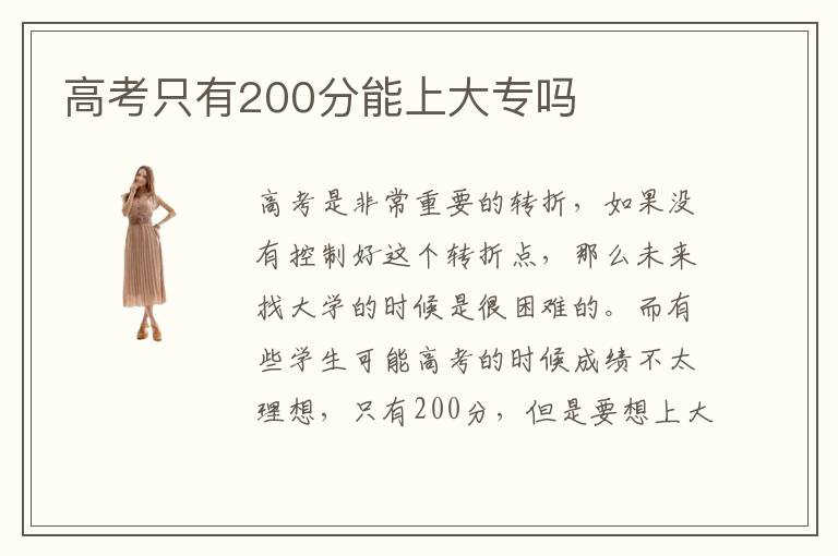 高考是非常重要的轉(zhuǎn)折,如果沒(méi)有控制好這個(gè)轉(zhuǎn)折點(diǎn),那么未來(lái)找大學(xué)的時(shí)候是很困難的。而有些學(xué)生可能高考的時(shí)候成績(jī)不太理想,只有200分,但是要想上大專。高考只有200分能上大專嗎??朴袥](méi)有優(yōu)勢(shì),要報(bào)名??茖W(xué)校其實(shí)很簡(jiǎn)單,要找到優(yōu)質(zhì)的學(xué)校需要一定的難度,大家還是要結(jié)合分?jǐn)?shù)的要求以及個(gè)人的興趣來(lái)決定。有些專業(yè)優(yōu)勢(shì)比較好的學(xué)校,確實(shí)是擁有更好的水平,那教學(xué)的成果也有保障。高考只有200分能上大專嗎有必要實(shí)地考察嗎,雖然高考只有200分,其實(shí)還是有上大專的必要,如果時(shí)間足夠可以到實(shí)地考察,了解大專的學(xué)習(xí)環(huán)境,學(xué)習(xí)的氛圍,老師的水平等等。有些學(xué)校確實(shí)是比較沒(méi)有教學(xué)經(jīng)驗(yàn),也不重視學(xué)生的教學(xué)成果,讓學(xué)生自生自滅等等,確實(shí)不值得考慮。大家要及時(shí)的區(qū)別出來(lái),不要選擇之后再后悔。