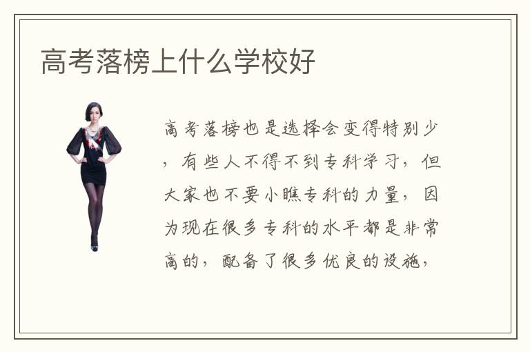 高考落榜也是選擇會變得特別少,有些人不得不到??茖W習,但大家也不要小瞧??频牧α?,因為現(xiàn)在很多專科的水平都是非常高的,配備了很多優(yōu)良的設施,教學水平比較優(yōu)越,說不定能取得更好的成績。高考落榜上什么學校好國外學校怎么樣,國外學校其實也有三六九等,大家不要總是認為國外的學校就一定好,要及時區(qū)分劣質學校。高考落榜上什么學校好有沒有發(fā)展前景,高考落榜之后,其實發(fā)展前景還是非常好的,有些人會選擇深造留學,在全新的領域,也許有更加廣泛的發(fā)展空間??赡苡行W生總是覺得國內的環(huán)境太過壓抑,記得每一天都有忙不完的功課和任務,除了吃飯睡覺就是學習,因此完全不適應,給自己太大壓力。而到了國外留學之后,才知道自由的天地,才知道創(chuàng)造的意義,才知道尋找自我的勇氣。