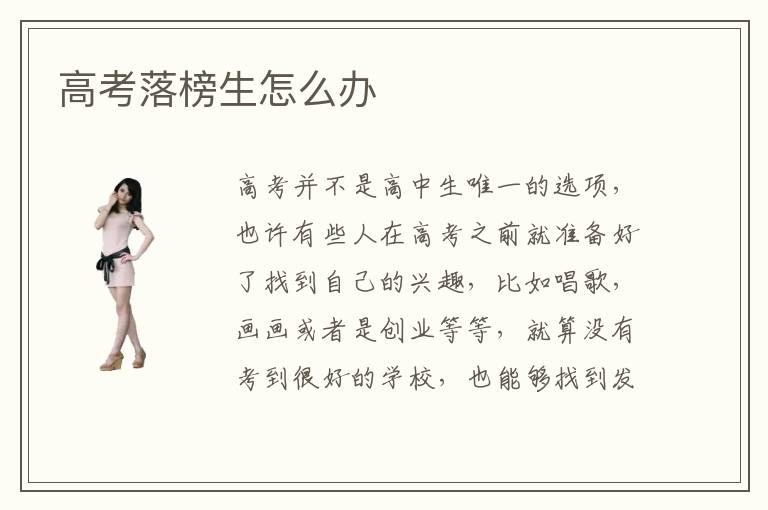 高考并不是高中生唯一的選項,也許有些人在高考之前就準(zhǔn)備好了找到自己的興趣,比如唱歌,畫畫或者是創(chuàng)業(yè)等等,就算沒有考到很好的學(xué)校,也能夠找到發(fā)展方向。這類型的學(xué)生就算高考落后也不會特別感到焦慮。不過有一些人平時就比較努力,希望能夠考到名牌大學(xué),高考落榜對他們來說可能是很大的打擊。高考落榜生怎么辦大專含金量,高考落榜生其實(shí)也還有比較多選擇的,有些人總是認(rèn)為高考失敗之后就是人生的失敗,其實(shí)并不是如此,大專也有很多專業(yè)程度高的,在學(xué)習(xí)三年之后也可以掌握一技之長,說不定比本科生更好。高考落榜生怎么辦出國有哪些注意事項,首先要了解每一種出國的手續(xù),看一下每個學(xué)校的招生章程以及條件,有些學(xué)校確實(shí)擁有不錯的資歷,專業(yè)水平高,排名靠前,大家可以重點(diǎn)關(guān)注。