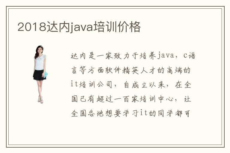 達(dá)內(nèi)是一家致力于培養(yǎng)java,c語(yǔ)言等方面軟件精英人才的高端的it培訓(xùn)公司,自成立以來(lái),在全國(guó)已有超過(guò)一百家培訓(xùn)中心,讓全國(guó)各地想要學(xué)習(xí)it的同學(xué)都可以來(lái)接受培訓(xùn)。達(dá)內(nèi)通過(guò)多樣的教學(xué)方案,對(duì)學(xué)員實(shí)施“因材施教”的教育方式,從而幫助他們更快,更好的吸收java專業(yè)的相關(guān)知識(shí)。你想知道2018達(dá)內(nèi)java培訓(xùn)價(jià)格是多少嗎?進(jìn)入達(dá)內(nèi)官網(wǎng)即可查詢。