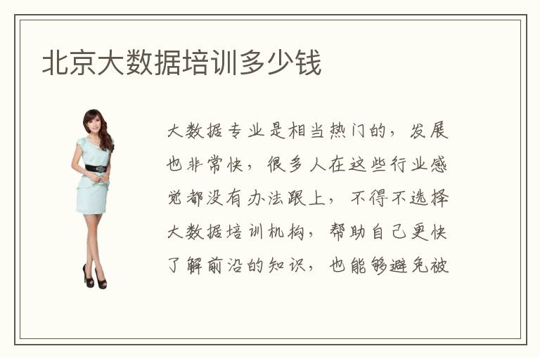 大數(shù)據(jù)專業(yè)是相當(dāng)熱門的,發(fā)展也非常快,很多人在這些行業(yè)感覺都沒有辦法跟上,不得不選擇大數(shù)據(jù)培訓(xùn)機構(gòu),幫助自己更快了解前沿的知識,也能夠避免被時代淘汰。那么大家可以多多關(guān)注北京大數(shù)據(jù)培訓(xùn)大數(shù)據(jù)培訓(xùn)多少錢,選擇性價比更高的大數(shù)據(jù)培訓(xùn)機構(gòu)類型。北京大數(shù)據(jù)培訓(xùn)多少錢啊,一般都會因為教學(xué)內(nèi)容以及培訓(xùn)方案、培訓(xùn)老師的專業(yè)水平等等不一樣,而存在大的差異。如果大數(shù)據(jù)培訓(xùn)機構(gòu)的老師有不錯的能力,專業(yè)技術(shù)強,那么當(dāng)然會有更貴的大數(shù)據(jù)培訓(xùn)費用。北京大數(shù)據(jù)培訓(xùn)多少錢,如果經(jīng)濟條件允許,可以考慮1萬元到2萬元的高級培訓(xùn)方案,往往會提供1對1的輔導(dǎo),而且也能呈現(xiàn)各種真正的場合應(yīng)用,讓學(xué)生可以了解各種具體的場合應(yīng)用領(lǐng)域,發(fā)揮理想的教學(xué)優(yōu)勢,大數(shù)據(jù)培訓(xùn)的效果會更理想。