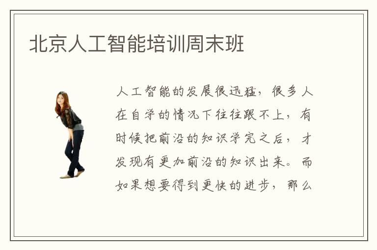 人工智能的發(fā)展很迅猛,很多人在自學(xué)的情況下往往跟不上,有時候把前沿的知識學(xué)完之后,才發(fā)現(xiàn)有更加前沿的知識出來。而如果想要得到更快的進步,那么可以考慮一下北京人工智能培訓(xùn)周末班,這些培訓(xùn)班往往擁有更高技術(shù),專業(yè)水平高,老師的資源豐富,在學(xué)習(xí)過程中更有針對性。人工智能培訓(xùn)周末班怎么樣,人工智能培訓(xùn)周末班一方面可以充分利用這些業(yè)余的時間,另外一方面又可以提高專業(yè)的成績和能力,在職場生涯中能夠把握優(yōu)勢,未來發(fā)展更快。北京人工智能培訓(xùn)周末班效果一般都很突出的,主要是由于老師經(jīng)驗豐富,可以為學(xué)生制定很多科學(xué)的課程內(nèi)容,而且也能將一些真實的應(yīng)用場景介紹給學(xué)生,學(xué)生理解更加充分,因此未來應(yīng)用的時候,就不需要太多理解時間,比別人更快一步。
