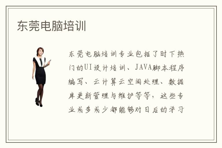 東莞電腦培訓專業(yè)包括了時下熱門的UI設計培訓、JAVA腳本程序編寫、云計算云空間處理、數(shù)據(jù)庫更新管理與維護等等,這些專業(yè)或多或少都能夠?qū)θ蘸蟮膶W習和生活起到一定的幫助作用。東莞計算機培訓班教師資源是很豐富的,培訓老師擁有高水平的培訓技能和新穎有效的培訓方式。東莞計算機培訓機構(gòu)課程安排有哪些?東莞計算機培訓學校的培訓有用嗎?