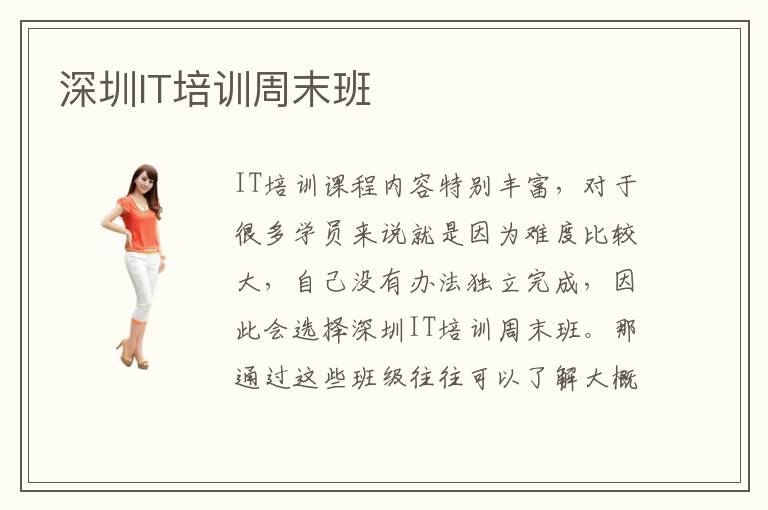 IT培訓課程內(nèi)容特別豐富,對于很多學員來說就是因為難度比較大,自己沒有辦法獨立完成,因此會選擇深圳IT培訓周末班。那通過這些班級往往可以了解大概的IT應用方面,也能優(yōu)化自身的學習技能中和在專業(yè)領(lǐng)域方面有更大的突破,取得更高的工資待遇和驕人的成績。深圳IT培訓周末班能力一般都會讓學生感到滿意,因為現(xiàn)在的IT培訓機構(gòu)很多的,而且有不同的類型,如果學生可以找到優(yōu)質(zhì)的課程,那么往往可以發(fā)揮出理想的IT專業(yè)教育優(yōu)勢的成果。深圳IT培訓周末班配套資源完善嗎,大多數(shù)周末培訓班的教育資源都非常完善,制定很多專業(yè)的基礎(chǔ)課程,為學生帶來很多幫助,所以學生如果想要學習這些課程,找到優(yōu)質(zhì)的專業(yè)輔導班和周末班,然后再努力學習,一般都可以有很明顯的優(yōu)勢和特色。