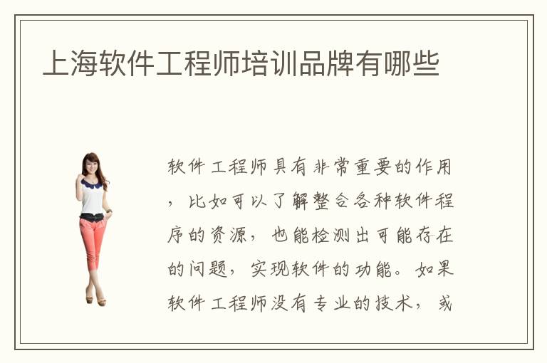 軟件工程師具有非常重要的作用,比如可以了解整合各種軟件程序的資源,也能檢測出可能存在的問題,實現(xiàn)軟件的功能。如果軟件工程師沒有專業(yè)的技術(shù),或者是剛剛起步,沒有任何經(jīng)驗,可以考慮一下上海軟件工程師培訓(xùn)品牌有哪些,在培訓(xùn)機構(gòu)的幫助之后,也許優(yōu)勢會更加突出。上海軟件工程師培訓(xùn)品牌有哪些好,軟件工程師培訓(xùn)機構(gòu)的類型很多,學(xué)生應(yīng)該要多多關(guān)注教學(xué)的經(jīng)驗、培養(yǎng)的課程體系、課程演練和就業(yè)指導(dǎo)優(yōu)勢等等。有些課程內(nèi)容比較全面的學(xué)校,往往在品牌方面也有非常高的質(zhì)量保障。上海軟件工程師培訓(xùn)品牌有哪些靠譜,只要軟件工程培訓(xùn)品牌擁有良好的師資,也有很多豐富的資源,那么這些品牌還是相對靠譜。不過也不排除某些機構(gòu)濫竽充數(shù),沒有實質(zhì)的教學(xué)經(jīng)驗,那么這些機構(gòu)學(xué)生要及時區(qū)別。