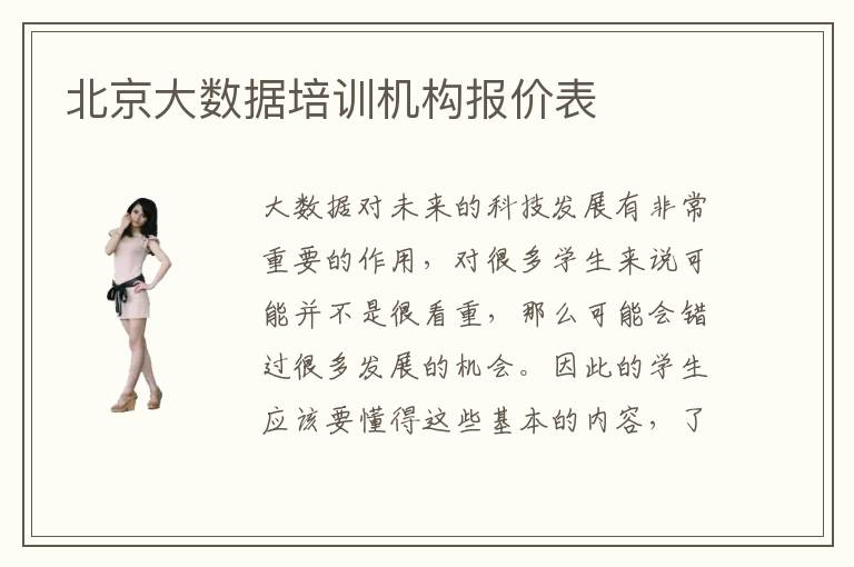 大數(shù)據(jù)對未來的科技發(fā)展有非常重要的作用,對很多學(xué)生來說可能并不是很看重,那么可能會(huì)錯(cuò)過很多發(fā)展的機(jī)會(huì)。因此的學(xué)生應(yīng)該要懂得這些基本的內(nèi)容,了解大數(shù)據(jù)的正確應(yīng)用以及知識的積累。但如果覺得平時(shí)比較忙,不知道怎么樣進(jìn)步,可以考慮專業(yè)的大數(shù)據(jù)培訓(xùn)班,這些班級往往可以提供更全面的科學(xué)內(nèi)容,讓學(xué)生可以有更加全面的知識提升。北京大數(shù)據(jù)培訓(xùn)大數(shù)據(jù)培訓(xùn)機(jī)構(gòu)報(bào)價(jià)表,可能在2000元到5500元,但也有部分是例外,主要是課程內(nèi)容不太一致。北京大數(shù)據(jù)培訓(xùn)機(jī)構(gòu)報(bào)價(jià)表如何考慮,有些學(xué)生可能覺得1對1的效果比較好,因此會(huì)選擇這些課程方案,前期的學(xué)習(xí)成果比較好,但是可能的報(bào)名費(fèi)會(huì)上漲。北京大數(shù)據(jù)培訓(xùn)機(jī)構(gòu)報(bào)價(jià)表影響因素要看各種培訓(xùn)的內(nèi)容、培訓(xùn)時(shí)間和方法,因?yàn)?對1的課程項(xiàng)目以及高級的培訓(xùn)項(xiàng)目是不一樣的。
