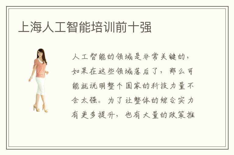 人工智能的領(lǐng)域是非常關(guān)鍵的,如果在這些領(lǐng)域落后了,那么可能就說明整個(gè)國家的科技力量不會太強(qiáng)。為了讓整體的綜合實(shí)力有更多提升,也有大量的政策推出,鼓勵(lì)人們學(xué)習(xí)人工智能的知識。而有些計(jì)算機(jī)專業(yè)的學(xué)生也想方設(shè)法改善自己在人工智能應(yīng)用方面的能力,因此想要找到上海人工智能培訓(xùn)前十強(qiáng),在專業(yè)人工智能培訓(xùn)導(dǎo)師的幫助下,優(yōu)化自身的應(yīng)用力量。上海人工智能培訓(xùn)前十強(qiáng)合不合適,人工智能培訓(xùn)機(jī)構(gòu)排名靠前的情況下,往往說明這些機(jī)構(gòu)擁有不錯(cuò)的專業(yè)水準(zhǔn),教學(xué)優(yōu)勢突出,輔導(dǎo)老師的能力高,學(xué)生的成績也是很好的。上海人工智能培訓(xùn)前十強(qiáng)如何挑選,要看課程質(zhì)量、基本的口碑,每一年的教學(xué)成績等等。因?yàn)橛行┤斯ぶ悄芘嘤?xùn)機(jī)構(gòu)的老師確實(shí)是很厲害,因此每一年的教學(xué)成績都非常搶眼,確實(shí)值得學(xué)生選擇。