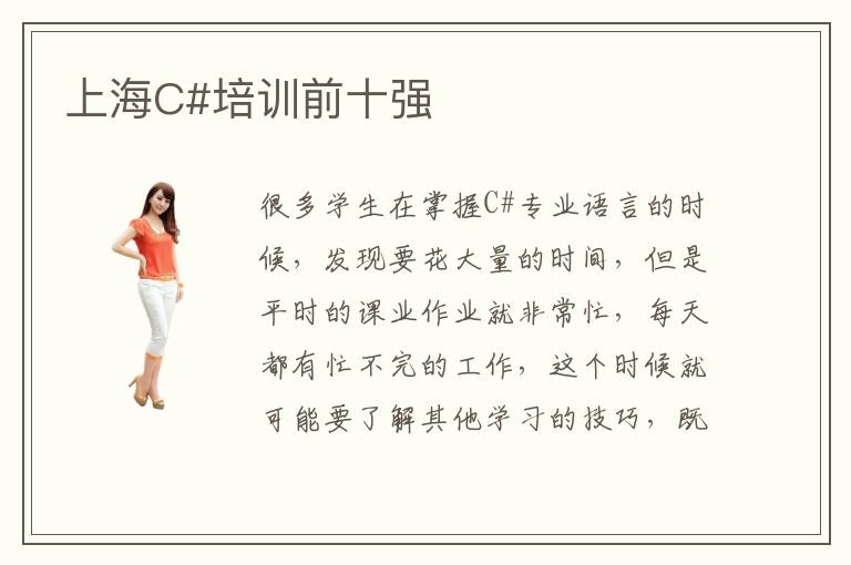 很多學(xué)生在掌握C#專業(yè)語(yǔ)言的時(shí)候,發(fā)現(xiàn)要花大量的時(shí)間,但是平時(shí)的課業(yè)作業(yè)就非常忙,每天都有忙不完的工作,這個(gè)時(shí)候就可能要了解其他學(xué)習(xí)的技巧,既能夠保證學(xué)習(xí)的效率,又可以鞏固其他知識(shí)的內(nèi)容。如果大家缺乏這方面的經(jīng)驗(yàn),可以考慮上海C#培訓(xùn)前十強(qiáng),通常這些專業(yè)的機(jī)構(gòu)都會(huì)有強(qiáng)勁的優(yōu)勢(shì),也能提高學(xué)生學(xué)習(xí)速度,在專業(yè)領(lǐng)域方面得到更加深入的認(rèn)識(shí),鞏固學(xué)生知識(shí)結(jié)構(gòu)。上海C#培訓(xùn)前十強(qiáng)水平通常都是比較高的,大多數(shù)都有不錯(cuò)的質(zhì)量,管理模式也相當(dāng)值得期待。有些學(xué)生可能平常缺乏C#專業(yè)內(nèi)容了解,但是通過(guò)專業(yè)培訓(xùn)指導(dǎo)的幫助,就能夠優(yōu)化技能,取得更加優(yōu)異的發(fā)展成績(jī)。上海C#培訓(xùn)前十強(qiáng)哪些合適,如果沒(méi)有太多經(jīng)驗(yàn)或者是沒(méi)有時(shí)間學(xué)習(xí),可以通過(guò)培訓(xùn)班的幫忙,提高學(xué)習(xí)的效率,舒緩學(xué)習(xí)的壓力。