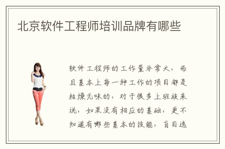 軟件工程師的工作量非常大,而且基本上每一種工作的項(xiàng)目都是枯燥無味的,對于很多上班族來說,如果沒有相應(yīng)的基礎(chǔ),更不知道有哪些基本的技能,盲目選擇軟件工程師的工作,確實(shí)是會遇到很多風(fēng)險(xiǎn)。為了避開這些風(fēng)險(xiǎn)問題,可以先由專業(yè)的培訓(xùn)機(jī)構(gòu)了解軟件工程的培訓(xùn)方案,優(yōu)化軟件工程的基本技術(shù),未來在軟件工程師的崗位上才可以得心應(yīng)手。北京軟件工程師培訓(xùn)品牌有哪些,其實(shí)軟件工程師培訓(xùn)品牌很多,并不是每個(gè)機(jī)構(gòu)都能夠發(fā)揮優(yōu)勢,可以找到專業(yè)性強(qiáng)、服務(wù)水平高的機(jī)構(gòu)。北京軟件工程師培訓(xùn)品牌好嗎,有部分軟件工程師培訓(xùn)機(jī)構(gòu)可能專業(yè)技術(shù)不夠好,因此不能告訴的考慮。北京軟件工程師培訓(xùn)品牌有哪些有保障,應(yīng)該要找到口碑好、專業(yè)質(zhì)量高,水平更加優(yōu)越的機(jī)構(gòu),那么軟件工程師培訓(xùn)的效果會更明顯。