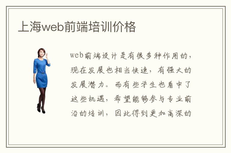 web前端設(shè)計(jì)是有很多種作用的,現(xiàn)在發(fā)展也相當(dāng)快速,有強(qiáng)大的發(fā)展?jié)摿Α6行W(xué)生也看中了這些機(jī)遇,希望能夠參與專(zhuān)業(yè)前沿的培訓(xùn),因此得到更加高深的技術(shù),未來(lái)就可以得到更多專(zhuān)業(yè)的知識(shí),發(fā)揮出良好的技術(shù)優(yōu)勢(shì)。上海web前端培訓(xùn)價(jià)格可能會(huì)在3000~15,000元,由于現(xiàn)在的前端設(shè)計(jì)公司類(lèi)型五花八門(mén),因此等級(jí)和服務(wù)質(zhì)量、培訓(xùn)方案、實(shí)戰(zhàn)演練的機(jī)會(huì)等等方面都不一樣。因此學(xué)生除了要考慮基本費(fèi)用之外,還要從這幾個(gè)角度去分析。上海web前端培訓(xùn)價(jià)格大概多少,web前端培訓(xùn)的費(fèi)用其實(shí)是很難確定,因?yàn)檎n程等級(jí)有很多,包括啟蒙型的和趣味性等等,還有高端性的,這些都有不同的培訓(xùn)收費(fèi)標(biāo)準(zhǔn)。上海web前端培訓(xùn)價(jià)格范圍,如果是屬于高端的項(xiàng)目,可能在5000到3萬(wàn)。但是可能有部分學(xué)生學(xué)習(xí)是基礎(chǔ)性的課程,因此3000左右就可以報(bào)名。