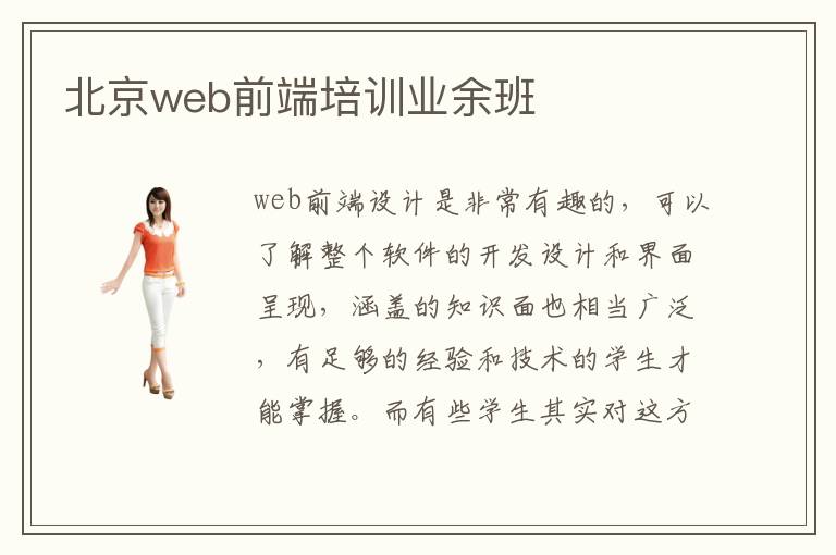 web前端設(shè)計是非常有趣的,可以了解整個軟件的開發(fā)設(shè)計和界面呈現(xiàn),涵蓋的知識面也相當(dāng)廣泛,有足夠的經(jīng)驗(yàn)和技術(shù)的學(xué)生才能掌握。而有些學(xué)生其實(shí)對這方面也很感興趣,想要挑戰(zhàn)自己,優(yōu)化知識的結(jié)構(gòu),那么可以考慮一下北京web前端培訓(xùn)業(yè)余班,老師會根據(jù)每個人的學(xué)習(xí)能力和基本的知識、經(jīng)驗(yàn)基礎(chǔ)等等方面來制定課程,讓每一個學(xué)生的前端設(shè)計能力都可以變得更強(qiáng)。北京web前端培訓(xùn)業(yè)余班選擇要考慮業(yè)余班的課程內(nèi)容,個人的能力以及感興趣的領(lǐng)域,有些人可能并不是很了解,在找專業(yè)前端設(shè)計培訓(xùn)機(jī)構(gòu)時沒有很明顯的優(yōu)勢,因此成果是很糟糕的,所以要謹(jǐn)慎對比。北京web前端培訓(xùn)業(yè)余班成果一般都不錯,只不過有些學(xué)生找到特別劣質(zhì)的機(jī)構(gòu),那么成果很難凸顯,雖然報名費(fèi)用更低,但是不值得大家考慮。