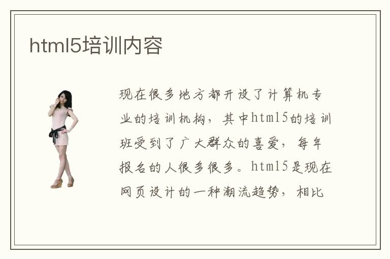 現(xiàn)在很多地方都開設了計算機專業(yè)的培訓機構,其中html5的培訓班受到了廣大群眾的喜愛,每年報名的人很多很多。html5是現(xiàn)在網頁設計的一種潮流趨勢,相比html運用更廣泛,編寫代碼的內容也沒有html那么繁瑣,需要背很多程序代碼。簡單明了的html5不僅方便設計者,也方便了運營方面。一般,專業(yè)品牌的培訓班html5培訓內容會分為多個階段,讓大家學習。