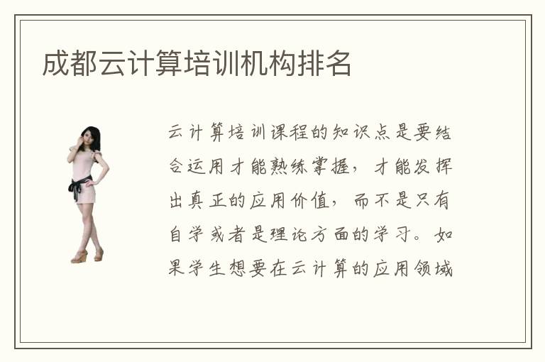 云計算培訓課程的知識點是要結合運用才能熟練掌握,才能發(fā)揮出真正的應用價值,而不是只有自學或者是理論方面的學習。如果學生想要在云計算的應用領域上得到更好的發(fā)展機遇,那么可以先找到成都云計算培訓云計算培訓機構排名,了解排名靠前的專業(yè)機構,因為排名靠前,說明云計算培訓機構能力比較強,不僅僅只是知識的方法培訓,而且?guī)砗芏嗨季S創(chuàng)造性方面的培訓。大家可以多關心這些機構,提升應用的價值和優(yōu)勢,改善云計算培訓的學習功效。云計算培訓機構實踐課程比較緊接時代的潮流,而且有一些課程都是能夠和國際接軌的,如果學生在平常缺乏實踐和學習的機會,那么考慮云計算培訓機構也許是更好的方法。有些專業(yè)的輔導機構能提高未來的發(fā)展實踐,提供很多個性化的教學以及小組的教學。