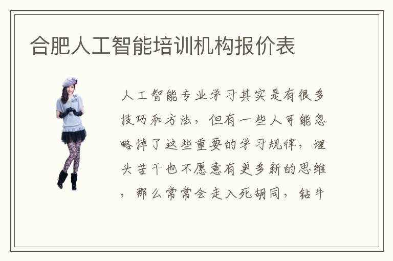 人工智能專(zhuān)業(yè)學(xué)習(xí)其實(shí)是有很多技巧和方法,但有一些人可能忽略掉了這些重要的學(xué)習(xí)規(guī)律,埋頭苦干也不愿意有更多新的思維,那么常常會(huì)走入死胡同,鉆牛角尖,確實(shí)是適得其反。所以大家要重視各種正確的學(xué)習(xí)方式,如果實(shí)在沒(méi)有辦法,可以考慮專(zhuān)業(yè)人工智能輔導(dǎo)機(jī)構(gòu),有很多專(zhuān)業(yè)的老師和輔導(dǎo)班都能為學(xué)生制定更加全面的專(zhuān)業(yè)的培訓(xùn)內(nèi)容,提高人工智能專(zhuān)業(yè)學(xué)習(xí)價(jià)值和應(yīng)用優(yōu)勢(shì)前景。合肥人工智能培訓(xùn)人工智能培訓(xùn)機(jī)構(gòu)報(bào)價(jià)表也許是2000到9000元不等,但是課程內(nèi)容以及教育質(zhì)量、培訓(xùn)方式等等都不同,所以報(bào)名的費(fèi)用也會(huì)有變化。人工智能培訓(xùn)機(jī)構(gòu)挑選方法主要從幾個(gè)角度出發(fā),比如人工智能培訓(xùn)課程內(nèi)容以及個(gè)人的技術(shù)狀態(tài)、老師水平等等。要是老師的水平很普通,那么可能會(huì)直接影響人工智能學(xué)習(xí)的成果。