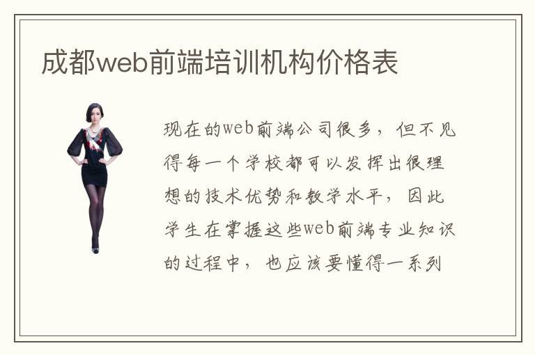 現在的web前端公司很多,但不見得每一個學校都可以發(fā)揮出很理想的技術優(yōu)勢和教學水平,因此學生在掌握這些web前端專業(yè)知識的過程中,也應該要懂得一系列的學習方法和學習進程,找到合適的學習機構,那么未來會得到很多優(yōu)勢和發(fā)展進步的空間。成都web前端培訓機構價格表,大概是在4000到15000元左右,因為課程以及技術等等不一樣,所以收費標準會有波動,但大多數都屬于正常的收費范圍,并不會太貴,但他可以多對比,了解適合自己的課程內容。有一些課程是比較難的,那么需要更加強大的web前端培訓機構實力,才能夠保證具體的成果以及web前端培訓機構作用。如果連基本的課程都沒辦法保證,那么學生可能很難吸收比較專業(yè)的技能知識,那么web前端培訓的質量就會很難保證。