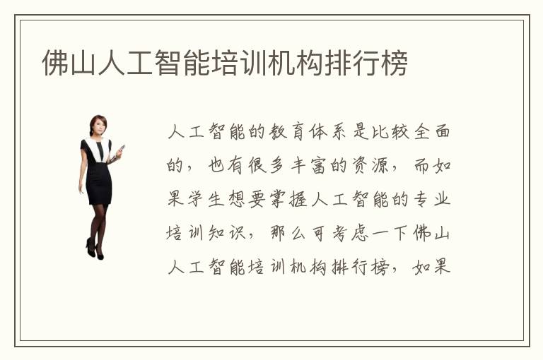 佛山人工智能培訓(xùn)機構(gòu)排行榜